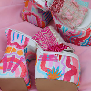 Hand woven fabrics and hand-painted leather that you see in this collection were all made by me.